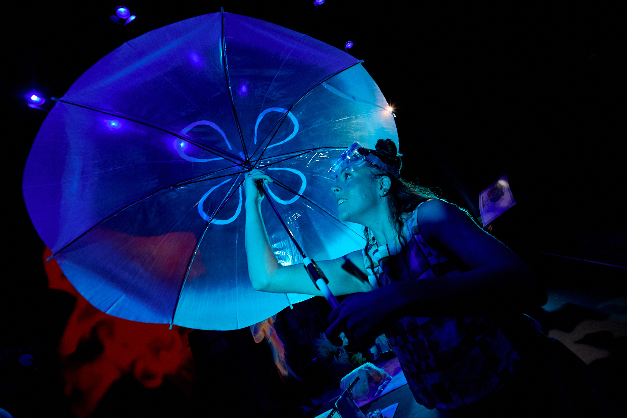IMAGINE LIVE combines live action and animation with digital puppetry in a large-scale, multi-screen performance. Underscored by original music, characters and objects travel between real and animated worlds, responding in real time to audience input.