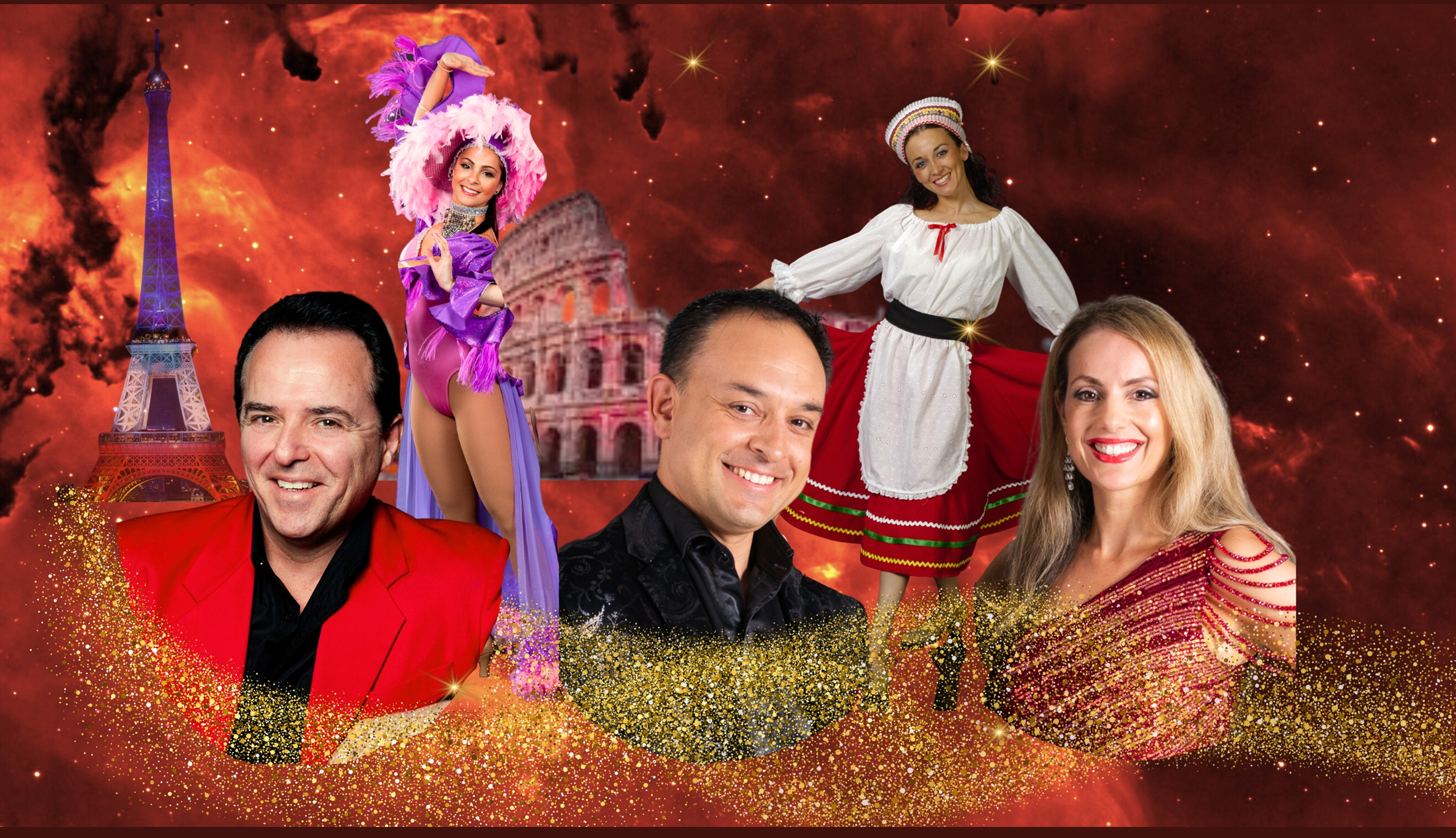 Onto France with a lavish medley of favourite French songs presented in Moulin Rouge and Follies Bergere revue style. Finally to the magic and mystery of Spain’s traditional music through to the modern day hits of the Gipsy Kings.